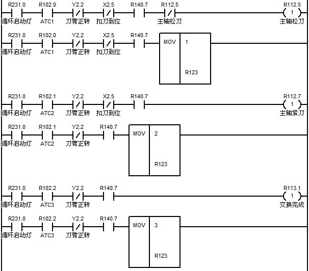 M37:刀庫正轉,直到碰到刀庫原點信號停止轉動。設置該時刻的刀位號為1號刀位。