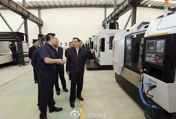 李克強(qiáng)總理視察嘉泰配置華中數(shù)控8型高檔數(shù)控系統(tǒng)的鉆攻中心車間