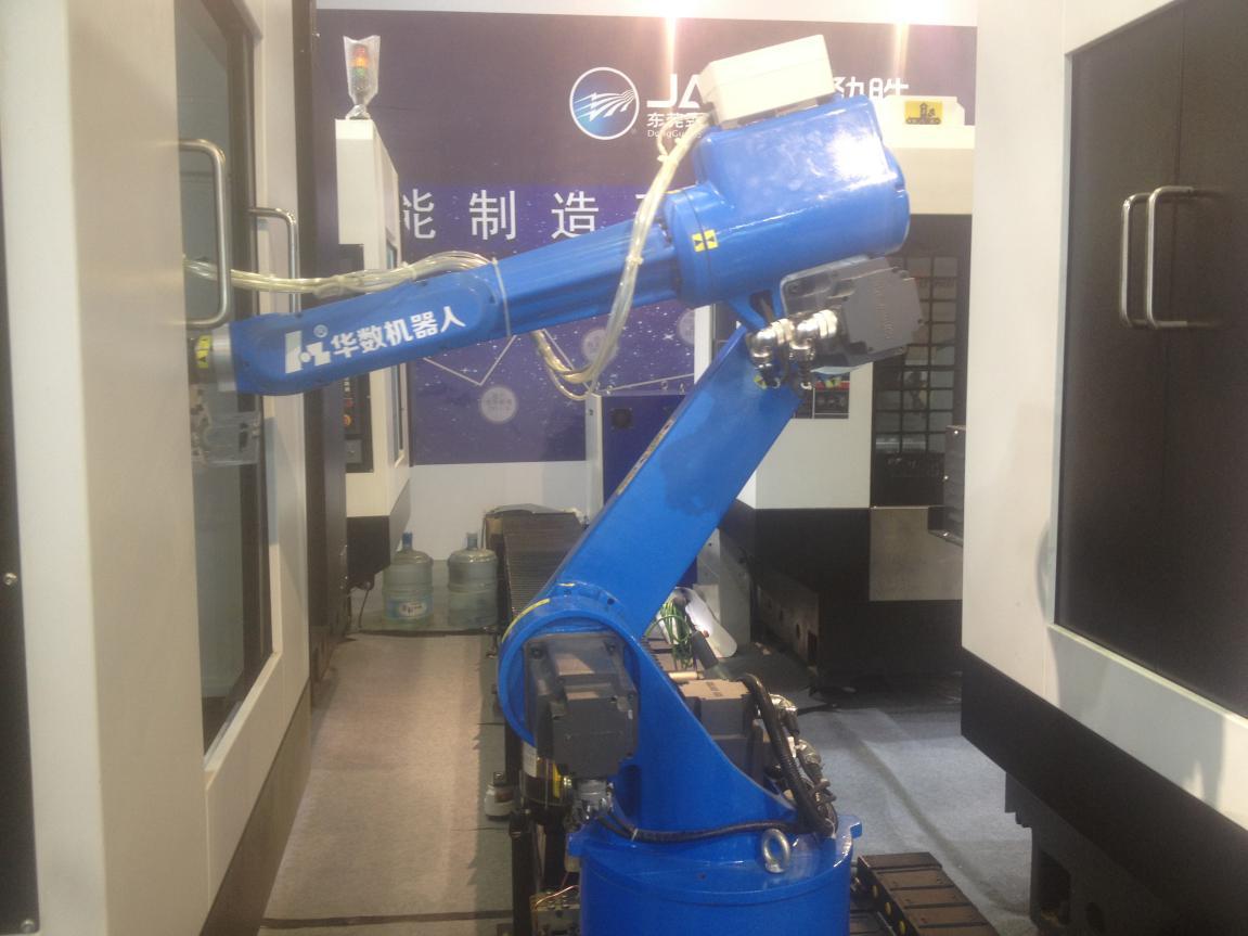 3C生產線作為智能化車間的重要組成部分,亮相本次展會,本次華中數控展出鉆攻中心機器人自動化整體方案,通過采用華數608系列機器人,實現4臺鉆攻中心之間的上下料工作,為業界呈現了優質的數控技術、自動化智能工廠技術實踐成果和應用解決方案,以智能技術打造智能工廠。
