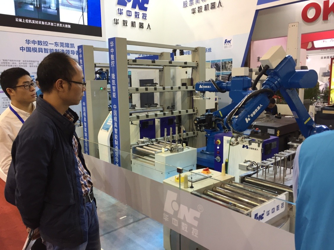 2016年11月29日 – 12月2日,第十八屆東莞國際模具及金屬加工展覽會(DMP2016)在廣東現(xiàn)代國際展覽中心(東莞市)隆重舉行。本次展會,華中數(shù)控旗下子公司深圳華數(shù)機(jī)器人有限公司與廣東隆凱股份有限公司能強(qiáng)強(qiáng)聯(lián)手,發(fā)揮技術(shù)優(yōu)勢,立足行業(yè)需要,隆重展出了模具制造智能工廠,用中國裝備助力中國制造2025,用實(shí)際行動竭力配合“世界工廠”產(chǎn)業(yè)轉(zhuǎn)型升級,吸引了眾多觀眾觀看討論,受到了行業(yè)和客戶的廣泛關(guān)注。