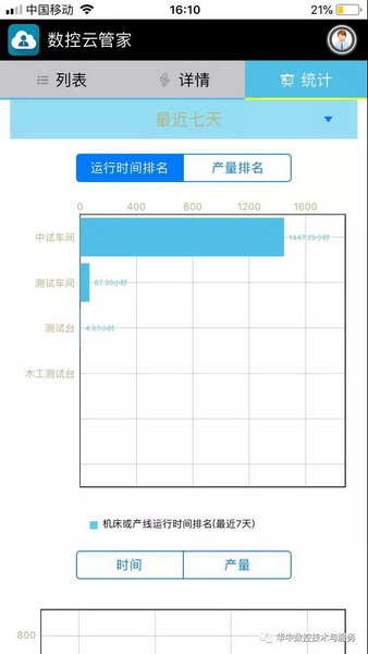 APP和web上顯示的勝利精密車間機床狀態和統計信息