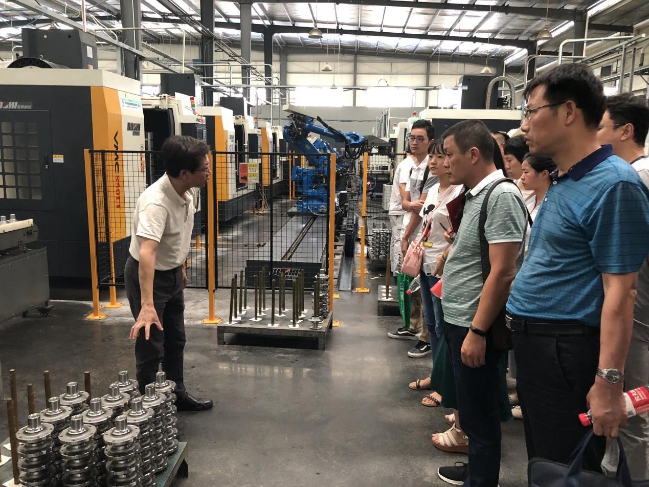 東風(fēng)楚凱汽車零部件有限公司副總經(jīng)理兼技術(shù)中心主任唐建華、華中數(shù)控副總指揮向華分別向參觀的企業(yè)代表介紹了東風(fēng)楚凱的自動(dòng)化生產(chǎn)線、工業(yè)機(jī)器人以及產(chǎn)線總控技術(shù)的應(yīng)用情況。東風(fēng)楚凱共建成高壓油泵驅(qū)動(dòng)單元和輪轂及輪轂單元2條應(yīng)用示范生產(chǎn)線,生產(chǎn)線共示范應(yīng)用64臺(tái)配套華中8型的高檔數(shù)控機(jī)床和25臺(tái)華數(shù)機(jī)器人。東風(fēng)楚凱通過(guò)這些國(guó)產(chǎn)化先進(jìn)設(shè)備和軟件技術(shù)的應(yīng)用,不僅實(shí)現(xiàn)了產(chǎn)線的實(shí)時(shí)監(jiān)控,還縮減了人力成本,提高了生產(chǎn)效率。