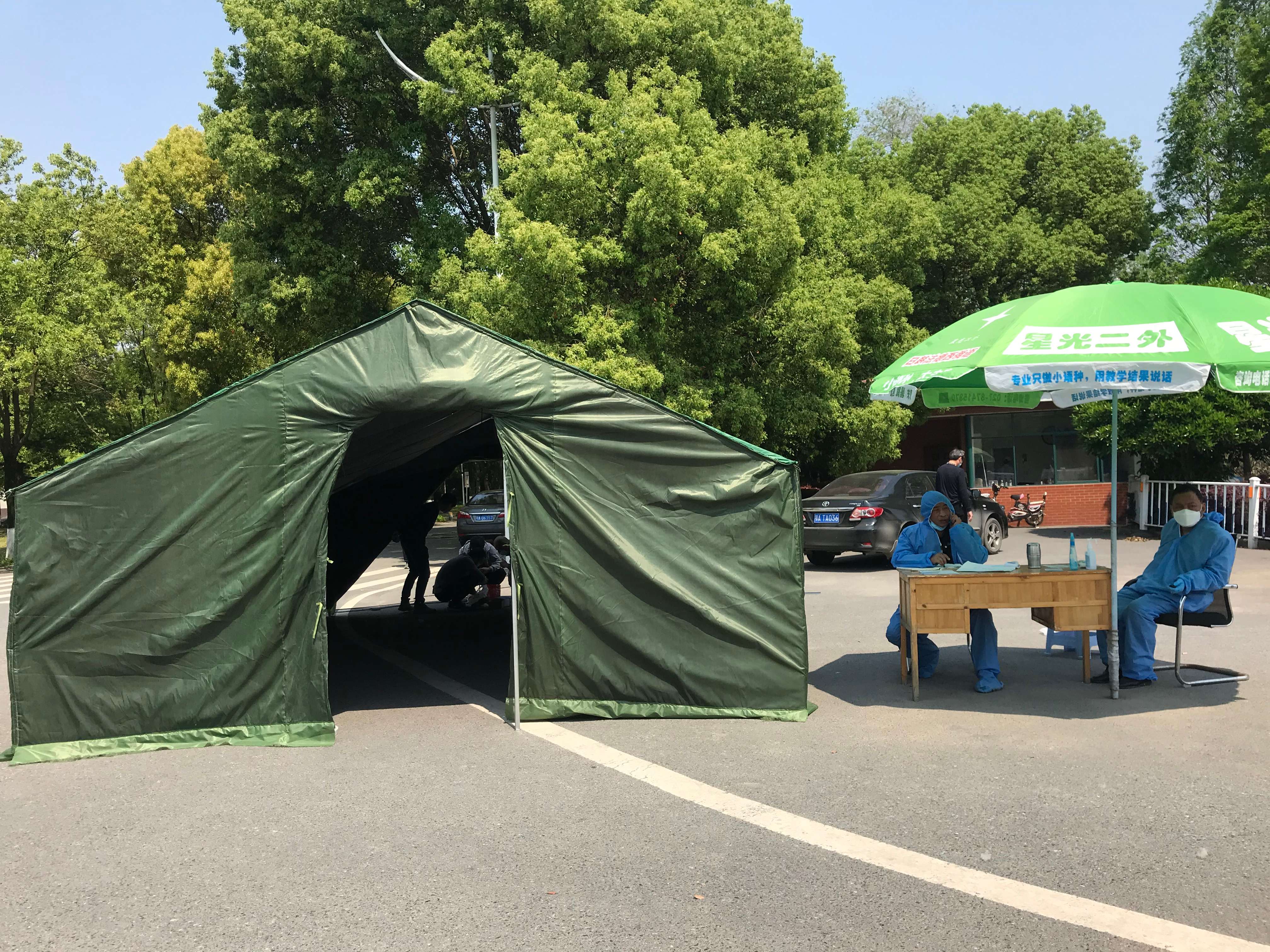 ? ? ? ? ? ? ? ? ? ? ? ? ? ? ? ? ? ? ?▲帳篷內(nèi)的華中數(shù)控紅外智能體溫檢測系統(tǒng)