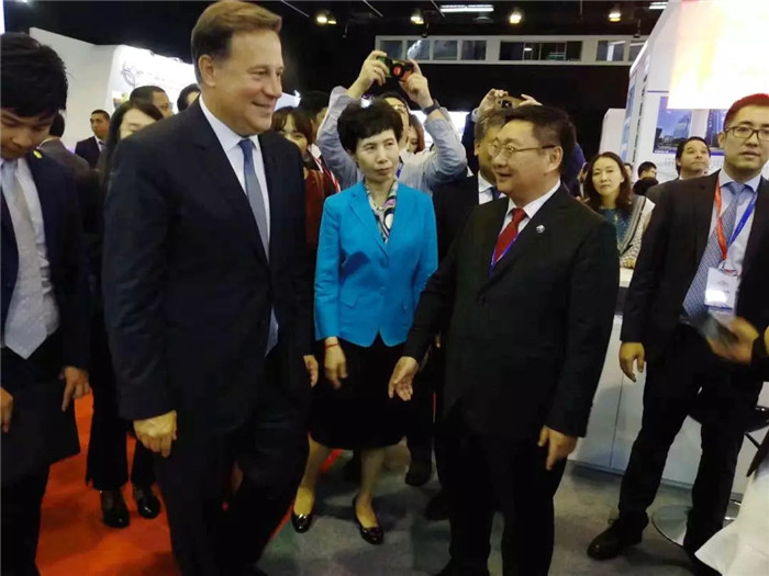 ▲2018年中國(guó)(巴拿馬)品牌博覽會(huì)上巴拿馬總統(tǒng)Juan Carlos Varela參觀展位