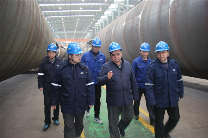 楊少稀現場檢查了風電塔筒的生產全流程,充分肯定了塔筒的下料、焊接、拼裝流程和效率,詳細了解了生產“瓶頸”?C?C塔筒涂裝流程,并聽取了整改目標。他要求公司領導班子帶領員工,對外進一步加大風電塔筒的市場開發力度,對內抓緊優化風電塔筒涂裝生產線,提高涂裝效率,釋放產能以承接更多的訂單,努力完成全年生產經營任務。